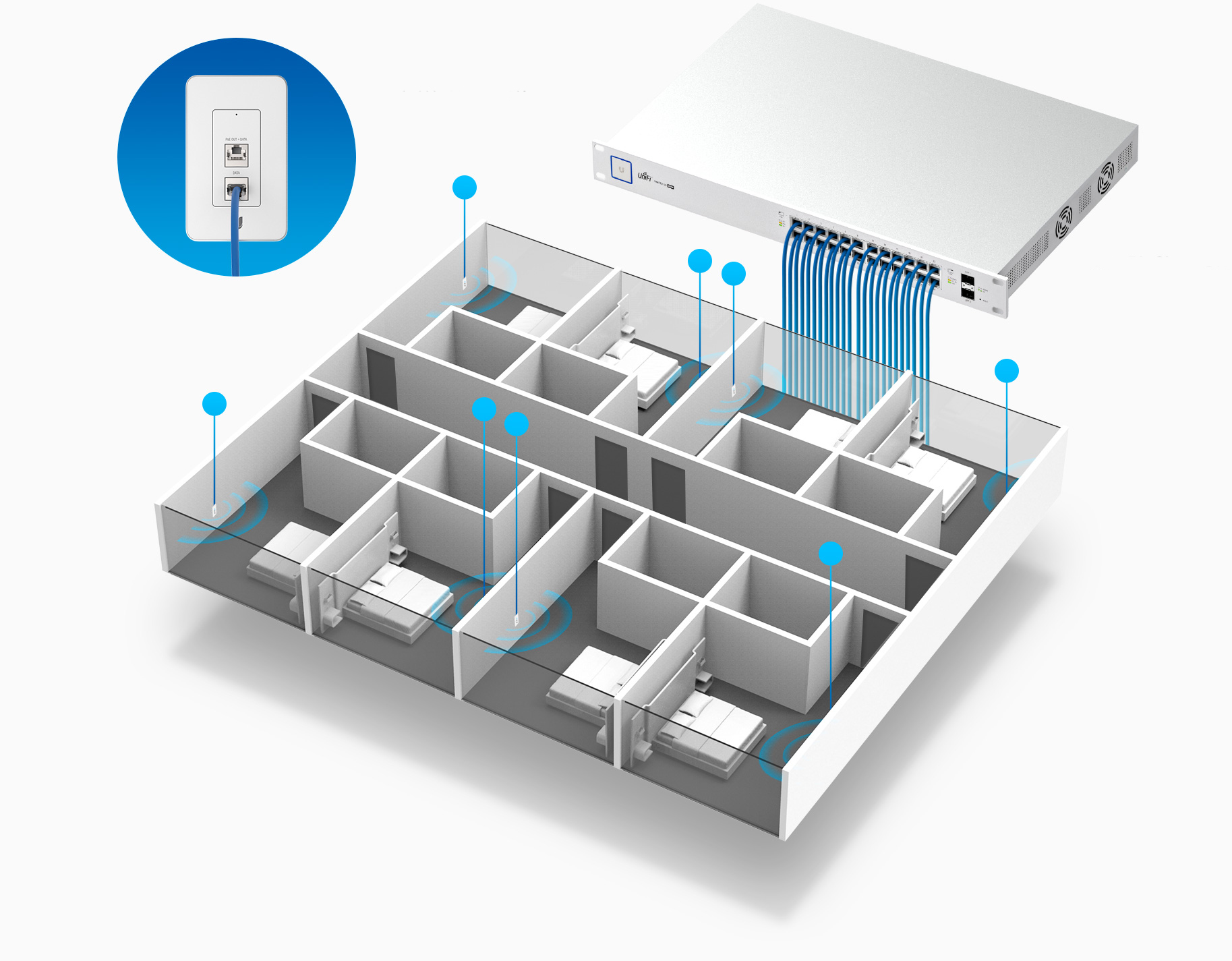 Mise en place de commutateurs réseau adaptés. Ce sont des dispositifs électroniques intelligents qui relient les câblages et le matériel informatique, et leur installation requiert une connaissance préalable de la topologie des serveurs pour bien déterminer le nombre de commutateurs dont le réseau a besoin. Une fois cette étape franchie, tous les éléments du réseau de l’entreprise sont enfin reliés.